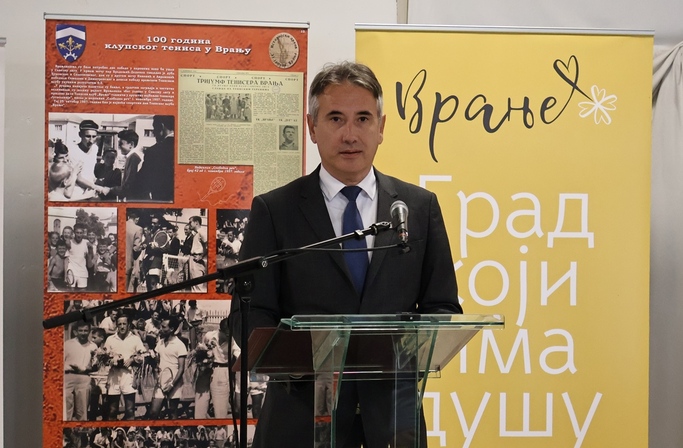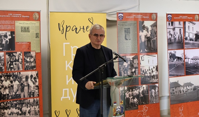 На догађају је говорио и градоначелник Врања др Слободан Миленковић, који је најпре подсетио на почетак развоја тениса у Врању. ,,Први тениски клуб формиран је 1924. године, две године након што је у Загребу основан Тениски савез Југославије. Радозналост, али и лепота игре, окупили су тада виђене Врањанце, трговце и интелектуалце, који су одмах након формирања клуба покренули и изградњу првог тениског терена. Свесрдну финансијску помоћ у тој намери пружио им је познати трговац и добротвор Јован Јанковић Лунга, те је први клуб и носио његово име. И управо изложба пред којом стојимо говори о тим почецима клупског играња тениса у Врању, али и свему осталом што је пратило раст и развој тениса као спортске дисциплине у нашем граду“, истакао је градоначелник.