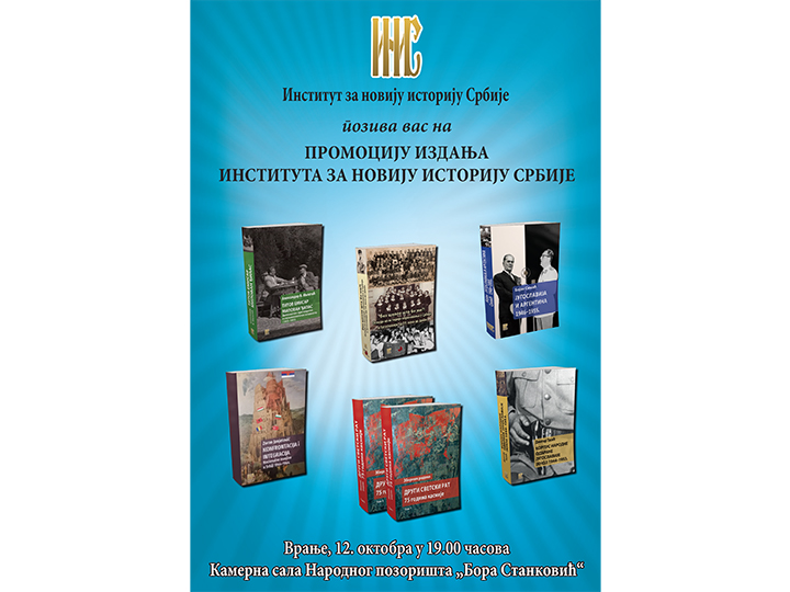 Историјски архив „31. јануар“ Врање и Институт за новију историју Србије реализовали су „Промоцију издања Института за новију историју Србије“ у Камерној сали Позоришта „Бора Станковић“ у Врању, 12. октобра 2022. године у 19.00 часова.