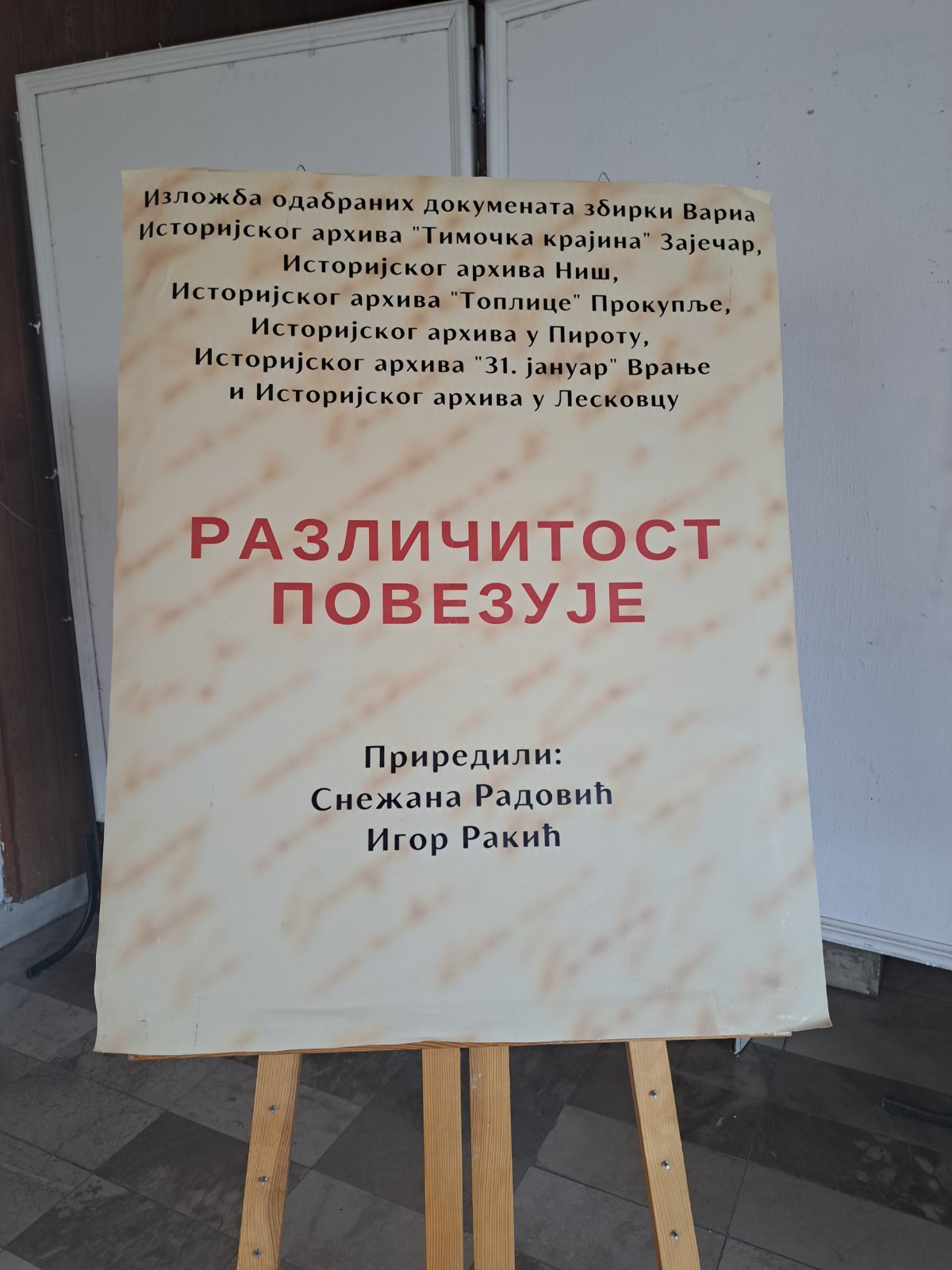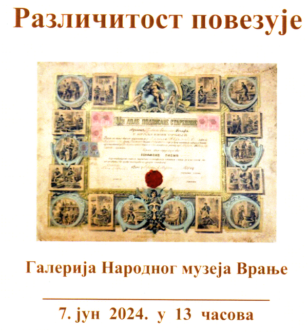 Поводом обележавања Међународног дана архива и у оквиру манифестације "Врањско културно лето 2024" у Галерији Народног музеја у Врању отворена је изложба архивских докумената и фотографија под насловом "Различитост повезује" која је настала заједничким радом историјских архива у Лесковцу, Пироту, Прокупљу, Нишу, Врању и Зајечару.