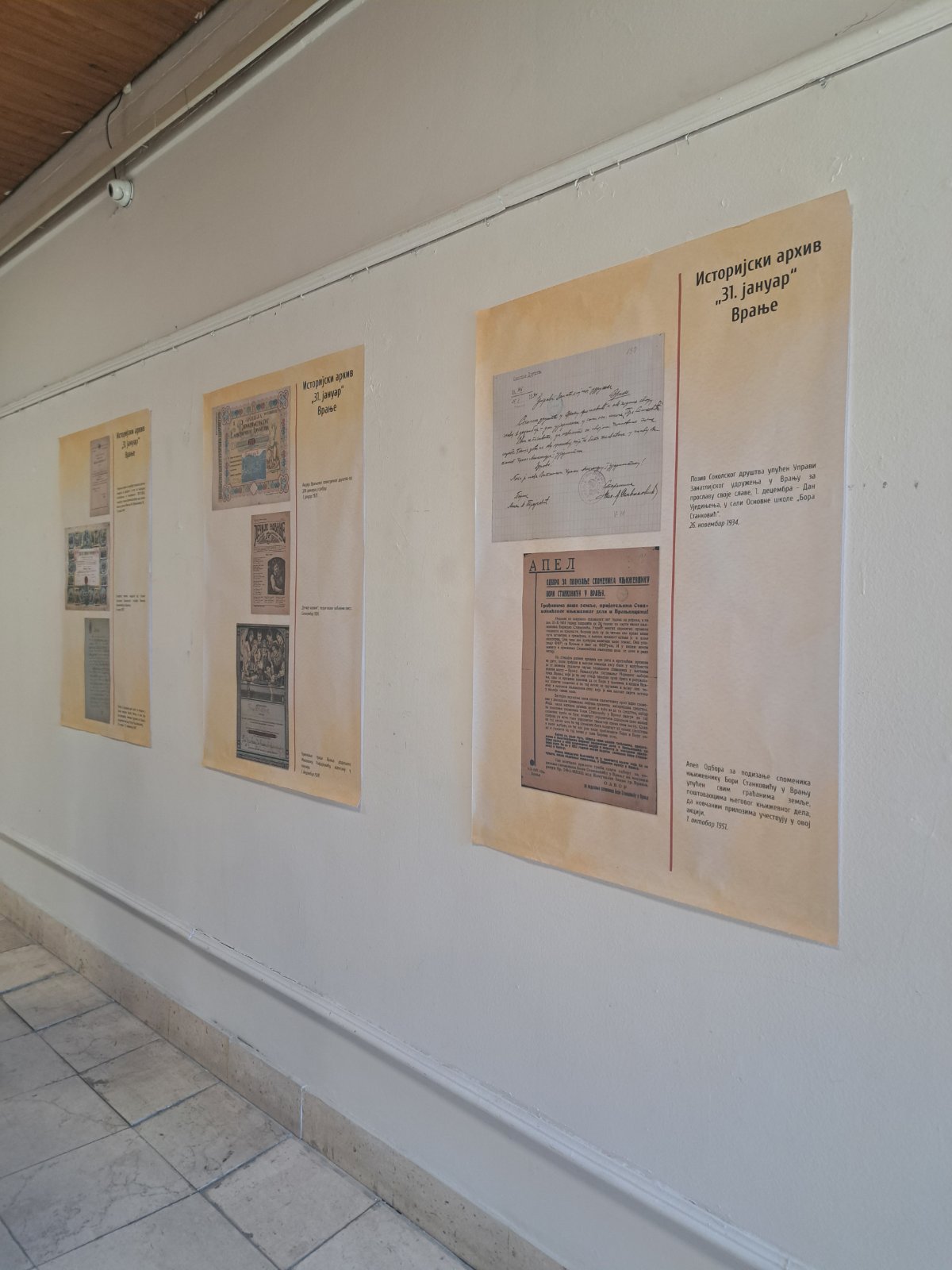 Изложбу је отворио заменик градоначелника Милан Илић. ,,Веома сам поносан на чињеницу да установе културе, уз подршку града, негују културу сећања и поред редовних активности настоје да обележе све датуме који се односе на делатност којом се баве. Зато смо и сви ми данас овде да обележимо 9. јун, Међународни дан архива. Дан који је установљен са циљем да развије свест јавности о значају архивске грађе као културном благу, које је неопходно сачувати од пропадања и заборава. Тим пре, јер управо та архивска грађа полазна је основа за истраживање прошлости, бележење историје једног народа и настајање нових дела. Изложба која је пред нама има посебну вредност јер је у њеној реализацији учествовало 6 архива, укључујући и Историјски архив ,,31. јануар“ Врање. Појединачна документа која се налазе на паноима пред нама сведоче о политичким, привредним и другим приликама које су се дешавале у различитим временским епохама у градовима чији су архиви учествовали у реализацији изложбе. С тога можемо да створимо слику о томе шта су били приоритети друштва и како се тада живело“, истакао је Илић.