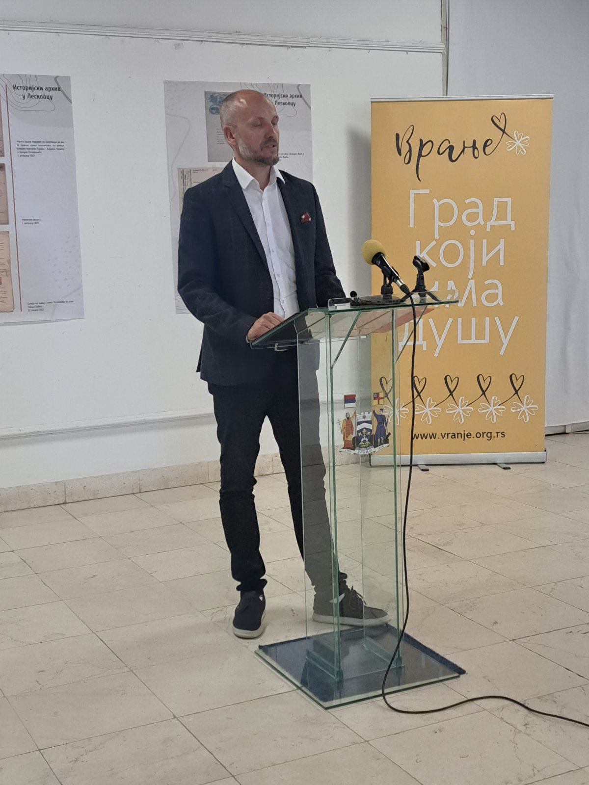 Присутнима се обратио и директор Историјског архива ,,31. јануар“ Врање, Ненад Јовић. ,,Међународни дан архива, 9. јун, светска архивска заједница, а у оквиру ње и српска заједница архива с Архивистичким друштвом Србије и Друштвом архивских радника Војводине, обележава као прилику да институције, удружења и професионалци који се баве архивирањем допринесу развоју свести о важности подржавања архива и професије архивисте. Жеља је да обележавањем овог дана подстакнемо и развијемо свест јавности о архивској грађи као културном и споменичком благу које заслужује да буде сачувано од заборава, пропадања, уништења, а првенствено као основа за писање историје и памћење једног народа. Јер народ без историје и памћења, као и писаних докумената која то потврђују, престаје да постоји. Међународни дан архива је прилика када архиви упознају јавност са својом стручном, културном, научном, административном и услужном делатношћу, као и са вредним историјским писаним благом о којем воде бригу”, рекао је Јовић.