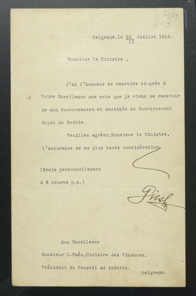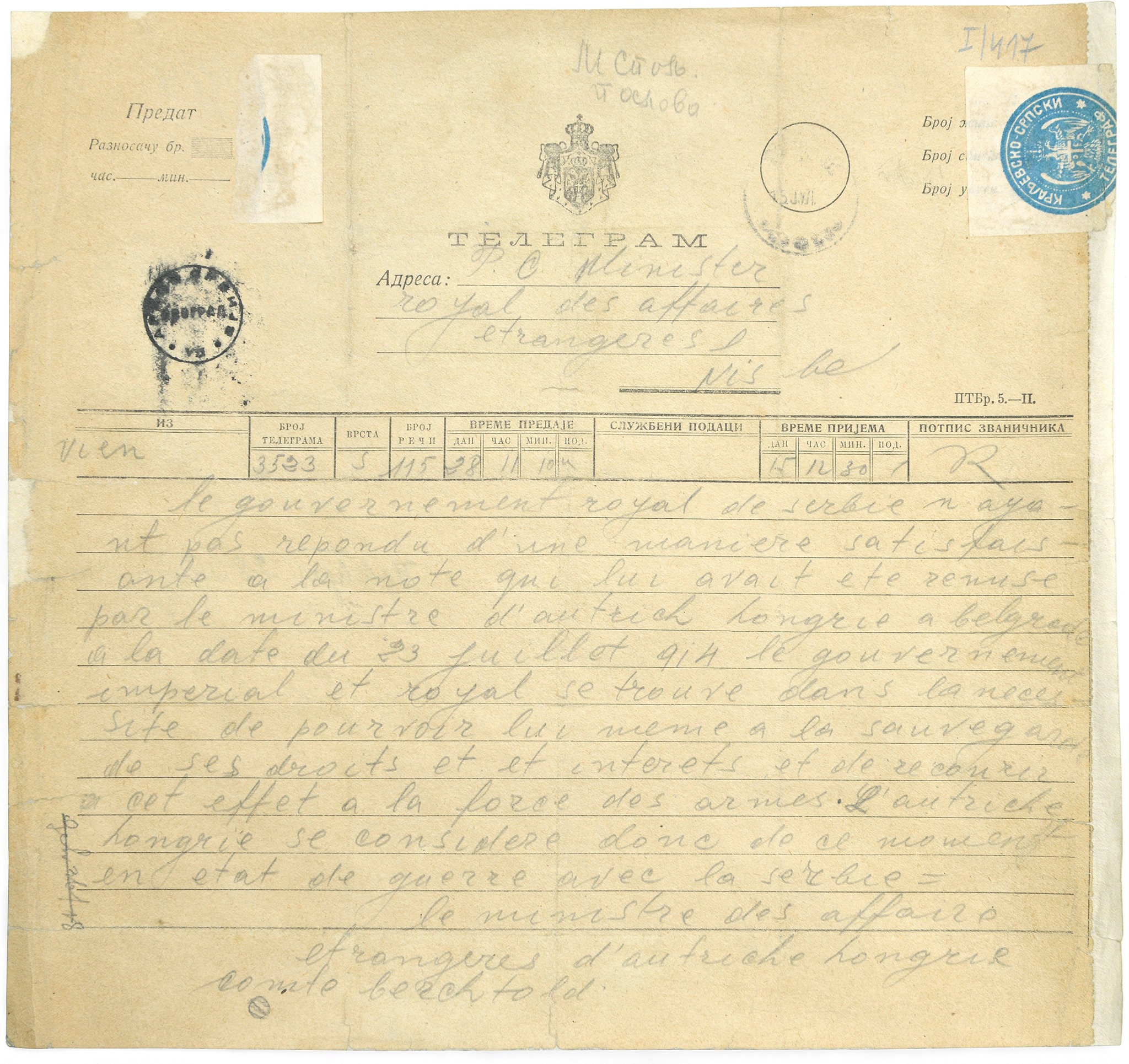 Представљањем оригинала аустроугарског Ултиматума Краљевини Србији, концепта Одговора Владе Краљевине Србије на Ултиматум и Телеграма објаве рата у Државном архиву, Србија и Република Српска започеле су заједничко обележавање 110 година од почетка Првог светског рата, у складу са Декларацијом донетом на Свесрпском сабору овог јуна у Београду.