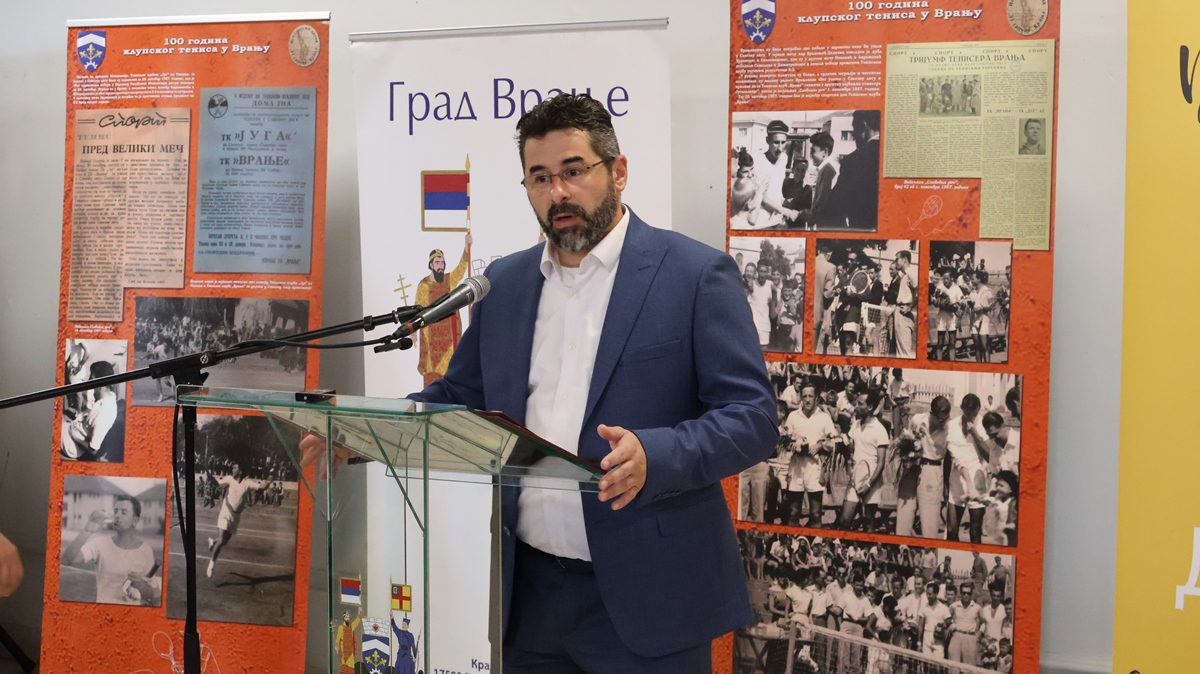 На догађају је говорио и градоначелник Врања др Слободан Миленковић, који је најпре подсетио на почетак развоја тениса у Врању. ,,Први тениски клуб формиран је 1924. године, две године након што је у Загребу основан Тениски савез Југославије. Радозналост, али и лепота игре, окупили су тада виђене Врањанце, трговце и интелектуалце, који су одмах након формирања клуба покренули и изградњу првог тениског терена. Свесрдну финансијску помоћ у тој намери пружио им је познати трговац и добротвор Јован Јанковић Лунга, те је први клуб и носио његово име. И управо изложба пред којом стојимо говори о тим почецима клупског играња тениса у Врању, али и свему осталом што је пратило раст и развој тениса као спортске дисциплине у нашем граду“, истакао је градоначелник.